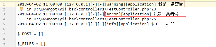 注意我们上面定义日志的levels为[‘error’, ‘warning’],所以日志只会记录这两个级别的信息。