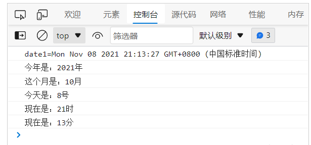 console.log('这个月是:'+date1.getMonth()+'月');