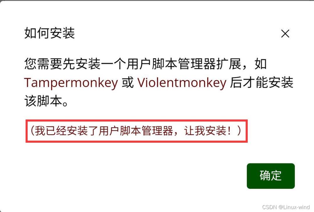 选择(我已经安装了用户脚本,让我安装!),没有这个弹窗可跳过此此步