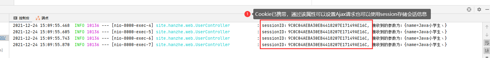 该属性同样比较常用,withCredentials的值为bool类型,用于设置是否允许携带Cookie,Axios请求默认是不允许携带Cookie的,可以通过Controller打印sessionID进行测试