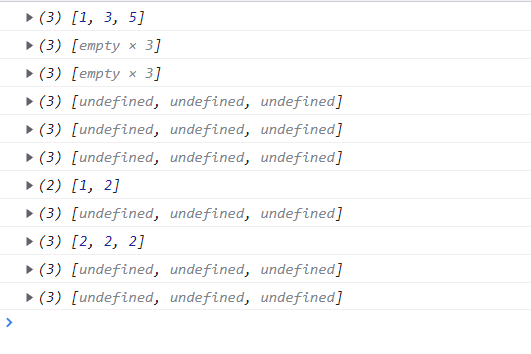 let arr = [1, 2, 3, 'arr', 5]; arr.fill(1, 2); console.log(arr); //[1,2,1,1,1] arr.fill(0, 1, 3); console.log(arr); //[1,0,0,1,1];