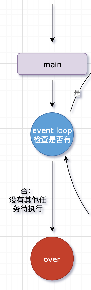 main:启动入口文件,运行主函数event loop:检查是否要进入事件循环 检查其他线程里是否还有待处理事项检查其他任务是否还在进行中(比如计时器、文件读取操作等任务是否完成)有以上情况,进入事件循环,运行其他任务- 事件循环的过程:沿着从timers到close callbacks这个流程,走一圈。到event loop看是否结束,没结束再走一圈。