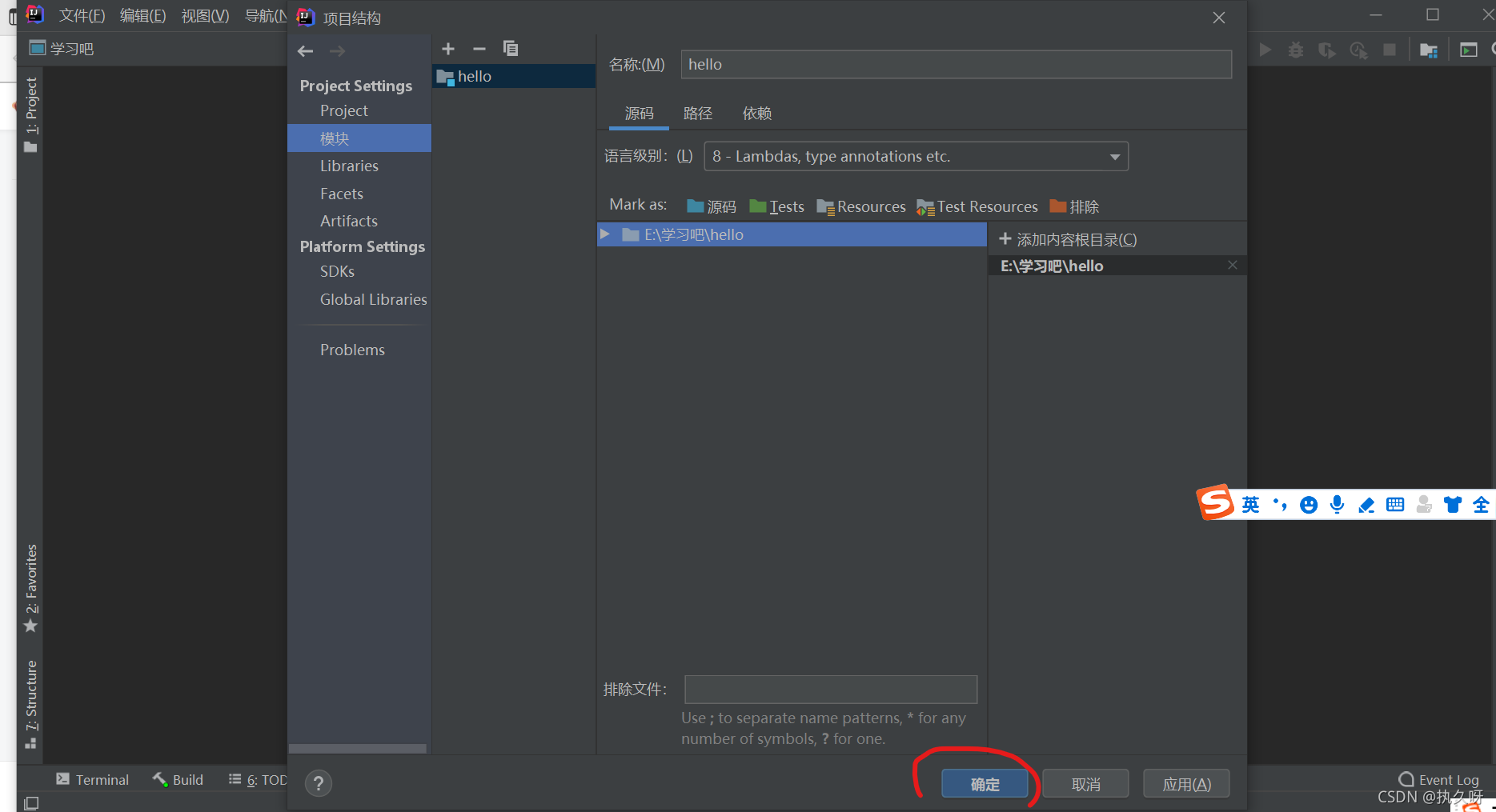 在工作目录下选择第三个,说明这个文件夹是一个模块,从其中也可以看出有一个模块