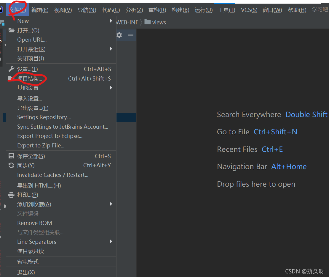第19步:要知道根目录在哪只需点击文件如图,单击项目结构即可