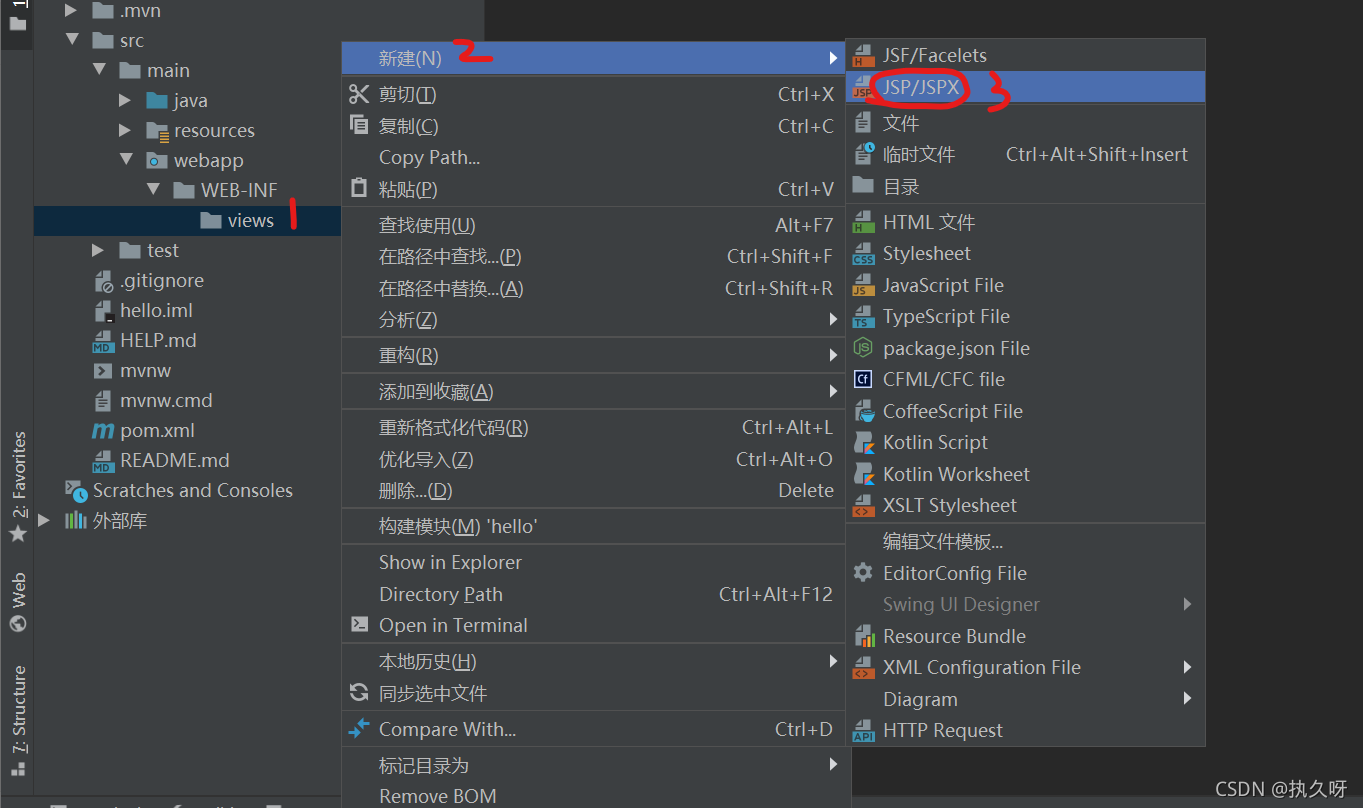 在views下没有我们想要的jsp文件,这说明我们还没有导入依赖,在导入依赖之前