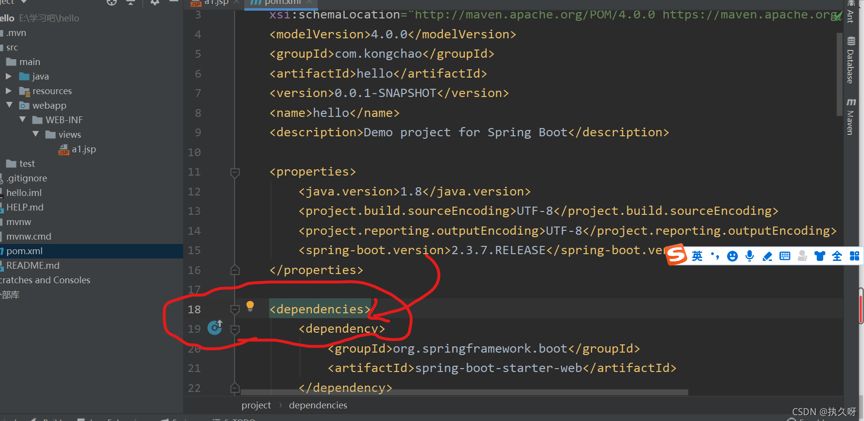 第25步:就要导入jsp的依赖了只需把这代码段全部的复制进去如图所示即可