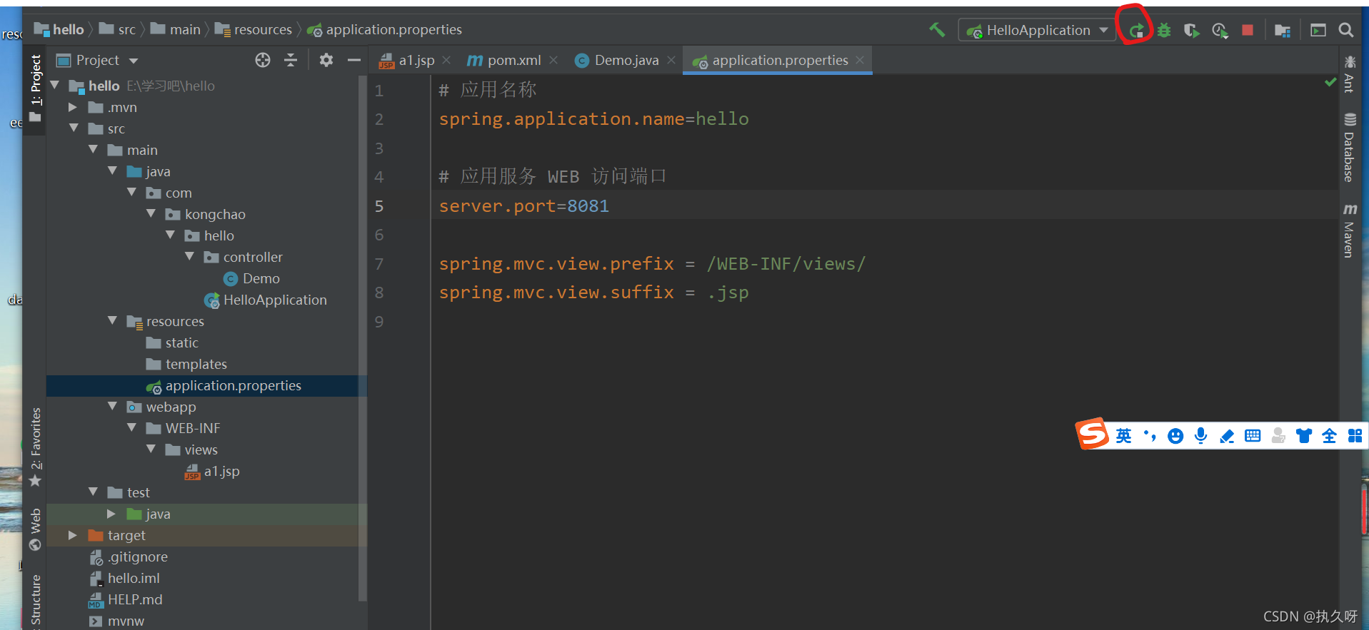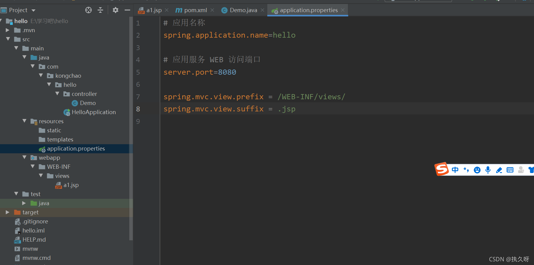 spring.mvc.view.prefix = /WEB-INF/views/ spring.mvc.view.suffix = .jsp