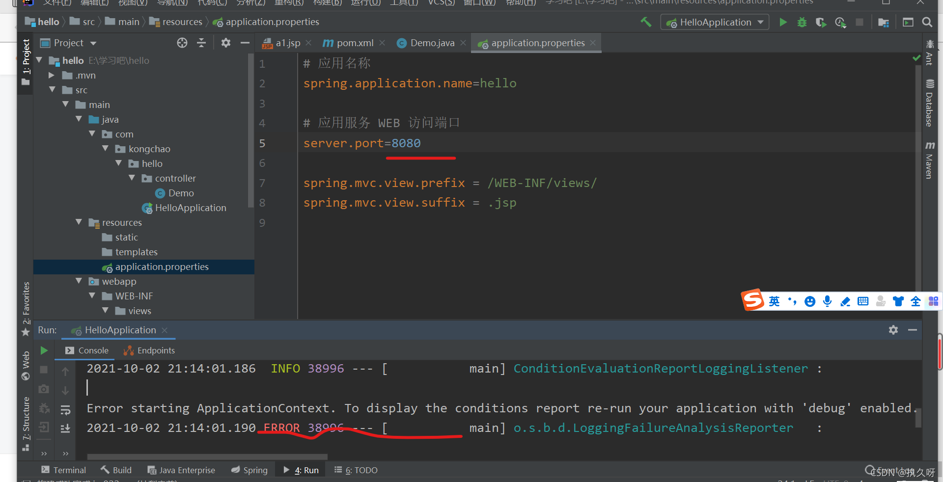 解决起来也是十分的容易,只需要把8080,该为其他数字即可(任意)