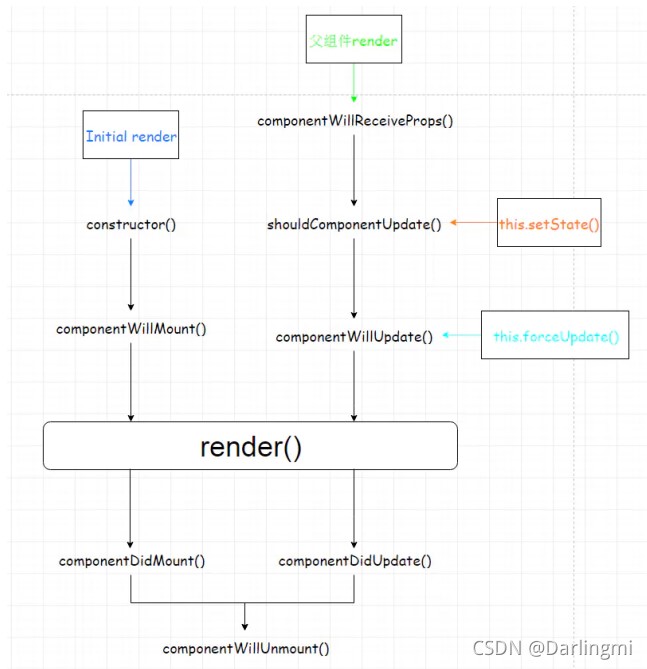 constructor():创建对象初始化 statecomponentWillMount() :将要插入回调render() :用于插入虚拟 DOM 回调componentDidMount() :已经插入回调
