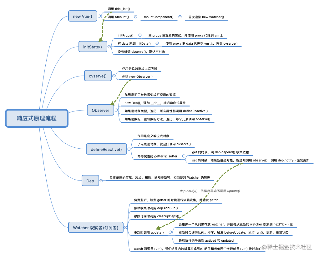至此 Vue2 的响应式原理流程的源码基本就分析完毕了,接下来就介绍一下上面流程中的不足之处