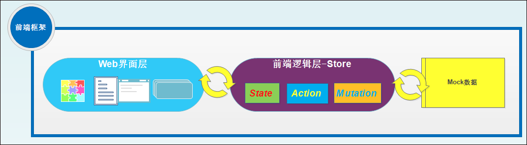 在前端处理中,主要就是利用Vuex模式中的Store对象里实现对Action和Mutation的请求处理,获取数据后,实现对State状态中的数据进行更新。如果仅仅是当前页面的数据处理,甚至可以不需要存储State信息,直接获取到返回的数据,直接更新到界面视图上即可。