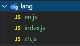 由于我们现在是需要处理多语言的切换,那么,我们在src下面的一个目录里面创建一个lang目录,在其中里面编辑zh.js和en.js分别代表中英文语言对照信息,index.js文件则为引入这两个文件的处理关系。