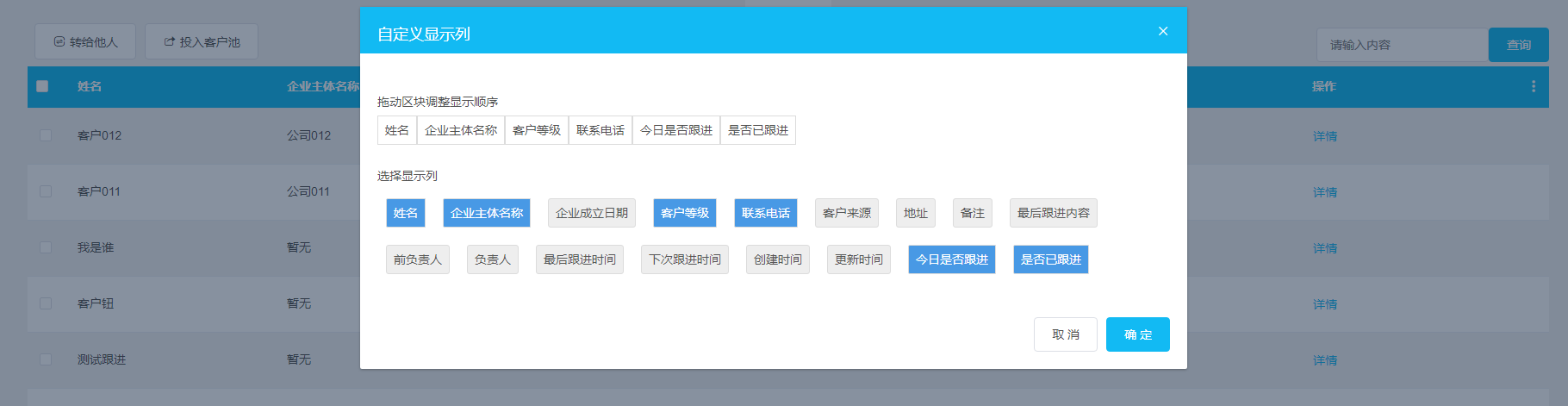 在我们开发PC端的项目使用表单时,尤其是crm系统,应该经常会遇到这样的需求, 用户需要根据设置来自定义显示列。 查了element的官方文档, 并没有此类组件, 所以手动封装了一个简单的组件, 希望能在大家开发此类需求时能够有所帮助。