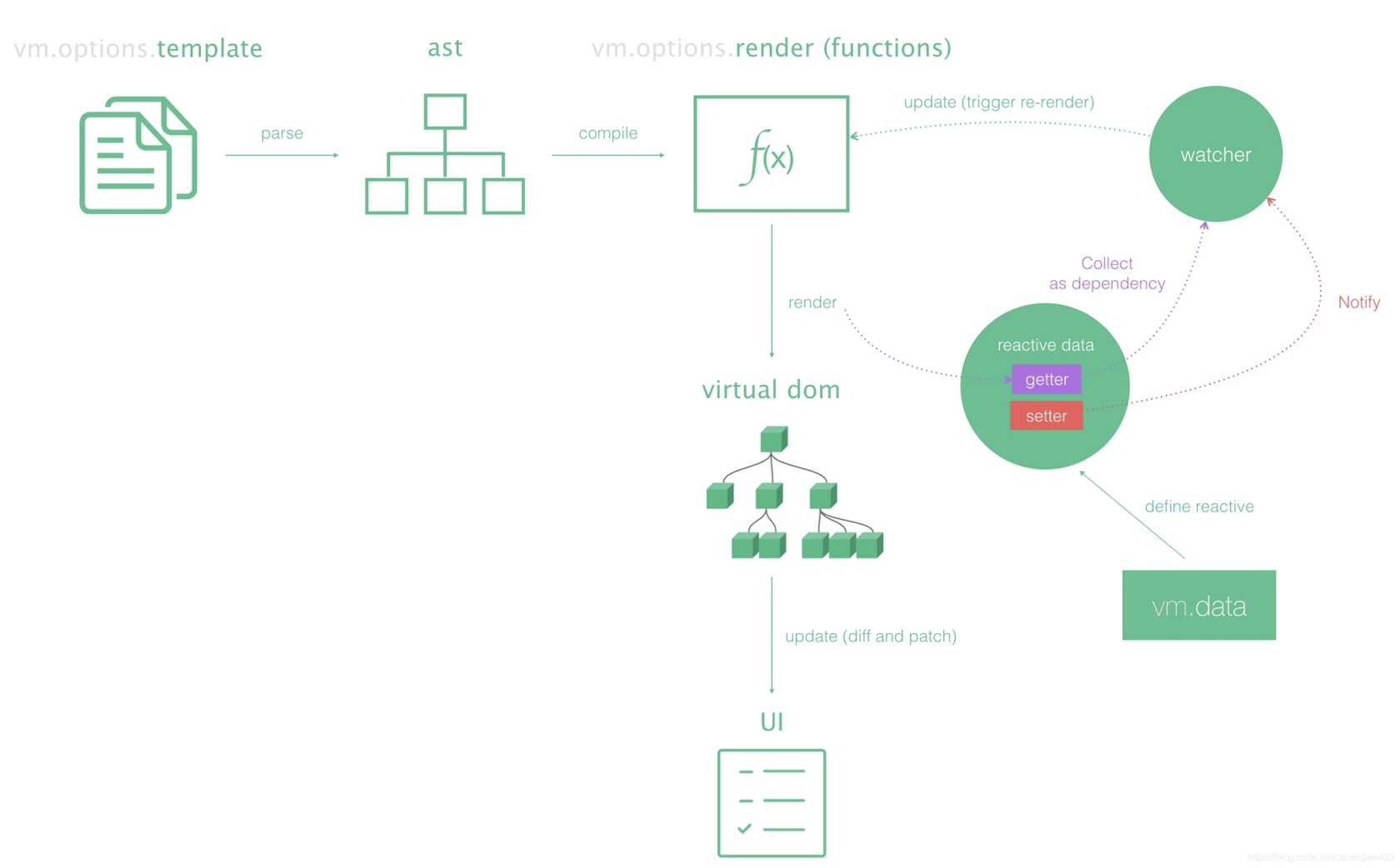 我想各位都知道或了解 Vue 的渲染流程,Vue 在监听到数据变化后会重新渲染,配合 VDOM 更新真实的 DOM,而 nextTick 的触发时机就是在调用方法后的第一次重新渲染完毕后。