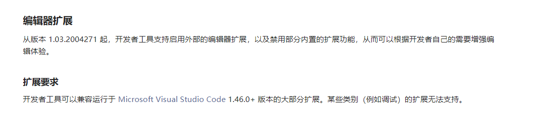 直接在微信开发者工具里使用的Easy-less,功能和在vscode里使用的一样,惊为天人的我感觉跑去官方文档去看,原来微信开发者工具早在 1.03.2004271 版本之后就开始支持扩展工具了。