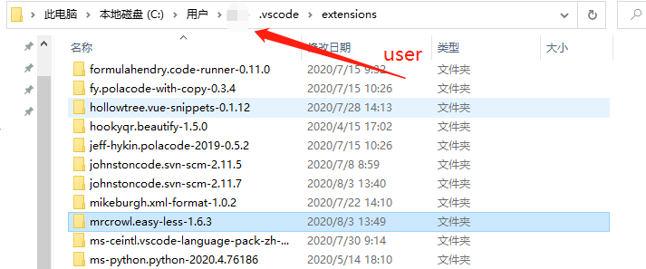 其解包后的文件夹可以在 ~/.vscode/extensions (macOS 系统) 或 C:\Users\用户名.vscode\extensions (Microsoft Windows 系统) 下找到