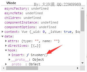mergeVNodeHook()钩子函数的作用是把insert作为一个hooks属性保存到对应的Vnode的data上面,当该Vnode插入到父节点后会调用该hooks,如下: