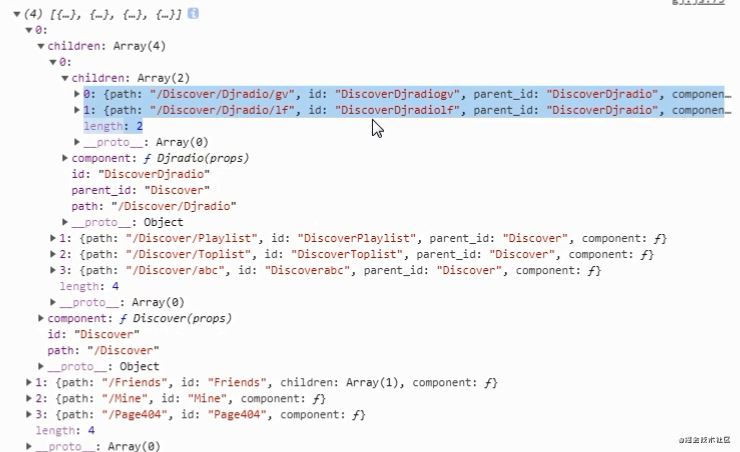 //3.有可能后面的路径不是文件夹 得到的结果是/Discover/abc.js,后缀名并不能用到路由配置的path属性中,所以.js后缀名又用正则替换掉