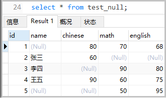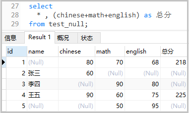 3)null值对聚合函数无影响,聚合函数会直接忽略null值;