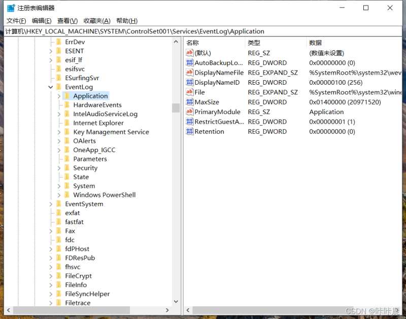 4-2.找到HKEY_LOCAL_MACHINE\SYSTEM\ControlSet001\Services\Eventlog\Application\MySQL
