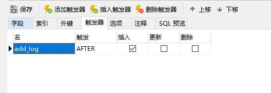 然后我们再用navicat创建一个delete触发器: