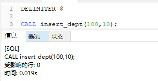 DELIMITER $ CREATE PROCEDURE insert_emp(IN START INT(10),IN max_num INT(10)) BEGIN DECLARE i INT DEFAULT 0; SET autocommit = 0; REPEAT #重复 SET i = i + 1; INSERT INTO emp(empon,ename,job,mgr,hiredate,sal,comm,depton) VALUES ((START+i),RAND_STR(6),'SALESMAN',0001,CURDATE(),2000,400,RAND_num()); UNTIL i = max_num END REPEAT; COMMIT; END $