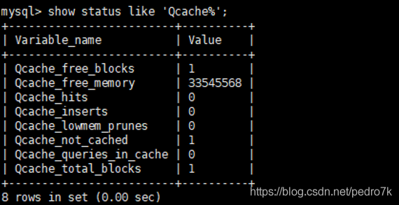 | Qcache_total_blocks | 查询缓存中的块总数 |