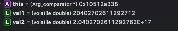 比较步骤如下图所示,逐行读取t1表的id列放入val1,而常量204027026112927603存在于cache中,类型为double类型(2.0402702611292762E+17),所以到这里传值给val2后val2=2.0402702611292762E+17。