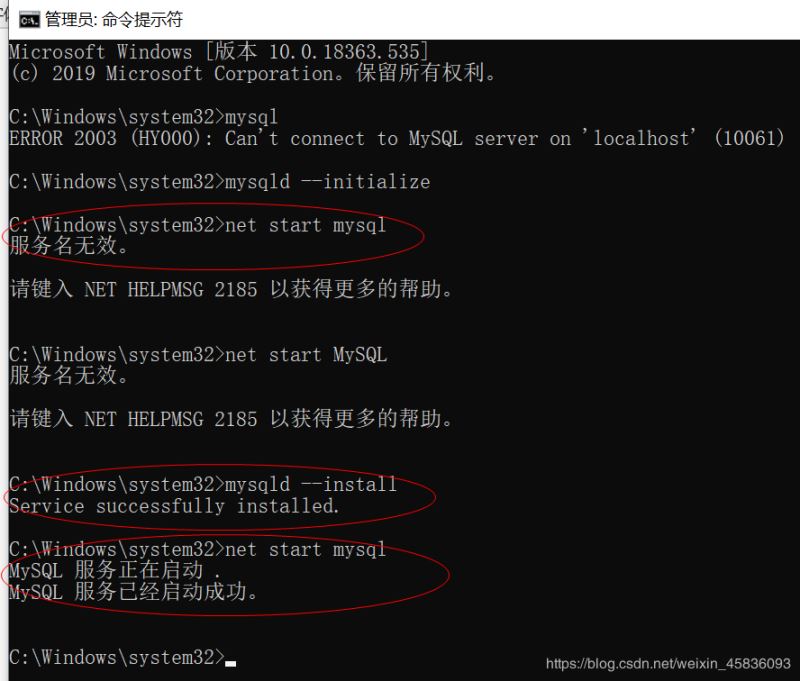 然后再次输入mysqld --install MySQL指令