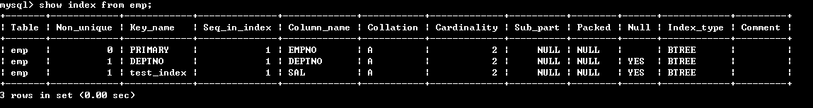mysql> ALTER TABLE EMP DROP INDEX test_index;