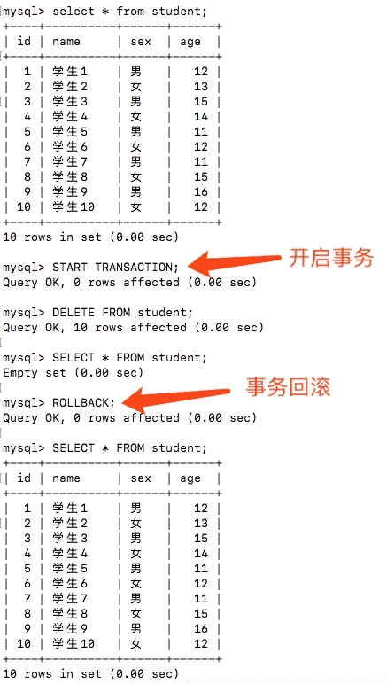 # delete - 条件删除 DELETE FROM student WHERE id = 1; # delete - 删除整个表的数据 DELETE FROM student; # truncate - 删除整个表的数据 TRUNCATE TABLE student;