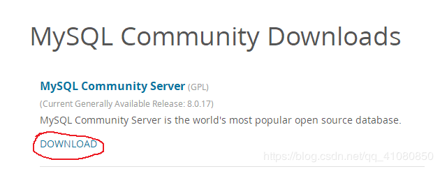 接下来,我们来到 MySQL Community下载页面,我们找到MySQL Community Server,并点击下载按钮,如下图所示: