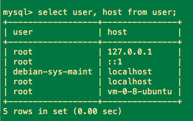 select host from user where user = 'root';