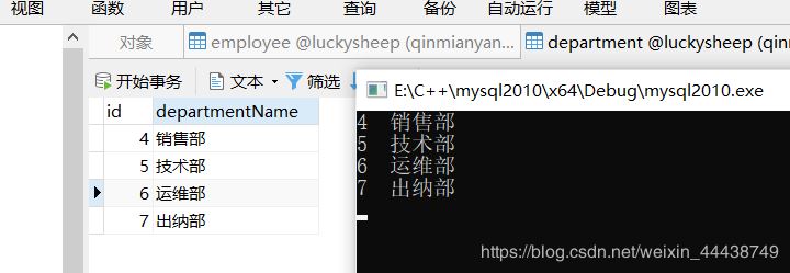 // mysql_real_connect参数:2.本地地址 3.你的mysql用户名 4.你的mysql密码 5.数据库名字 6.端口号