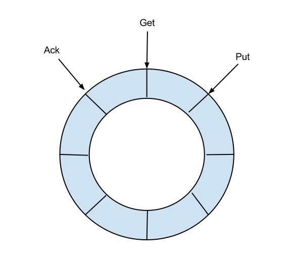put/get/ack cursor用于递增,采用long型存储。三者之间的关系为put>=get>=ackbuffer的get操作,通过取余或者&操作。(&操作:cusor & (size – 1) , size需要为2的指数,效率比较高)