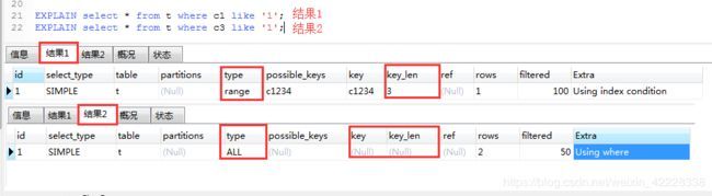 上图结果显示直接使用c3是全表查询,无法使用该索引的,所以c3字段使用索引的前提是c1,c2两字段均使用了索引。