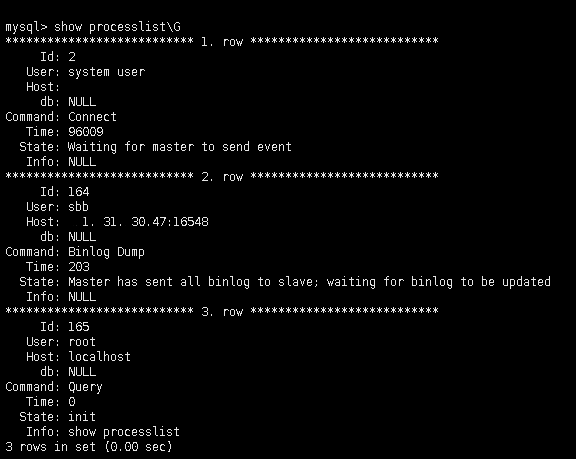 在主库上也可以查询的到复制线程的状态。