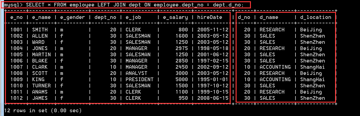 SELECT * FROM employee LEFT JOIN dept ON employee.dept_no = dept.d_no;