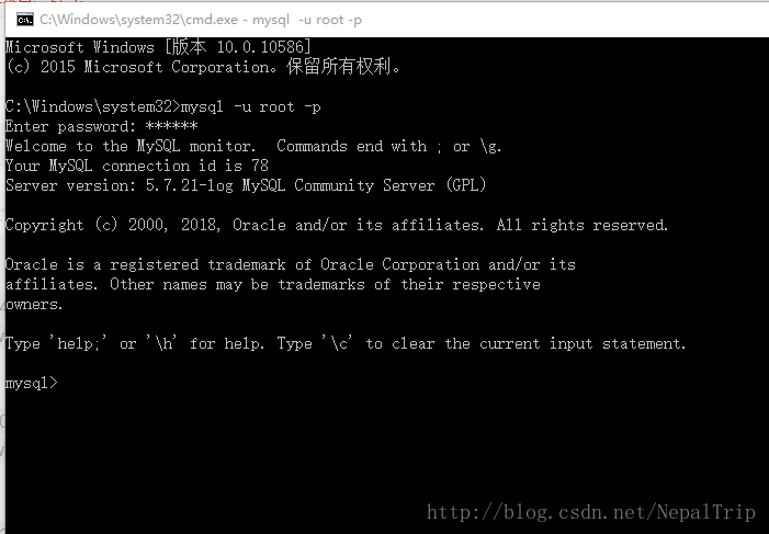 不过每次使用的时候,必须进入mysql的安装bin目录才可以通过mysql -u root -p 进入,如下
