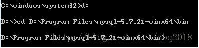 如:D:\Program Files\mysql-5.7.21-winx64\bin