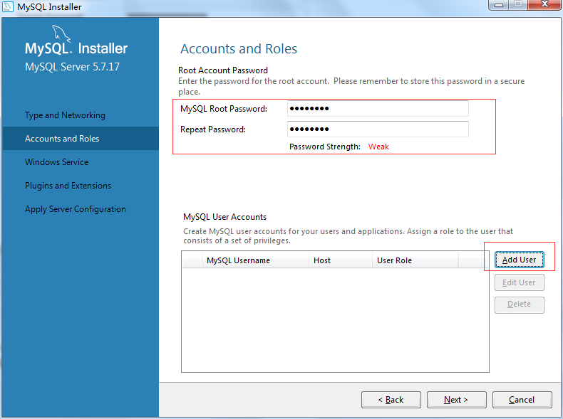7、下一步,设置数据库密码,重复一次,这个密码是root用户的密码,超级管理员。