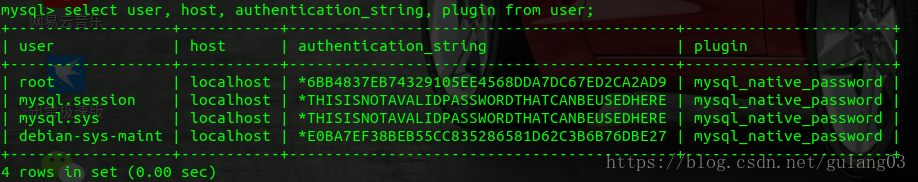 可以看到,root 密码依旧是空,plugin 明显与其他不同,之后查阅相关资料,发现这就是普用户无法登陆的问题所在。