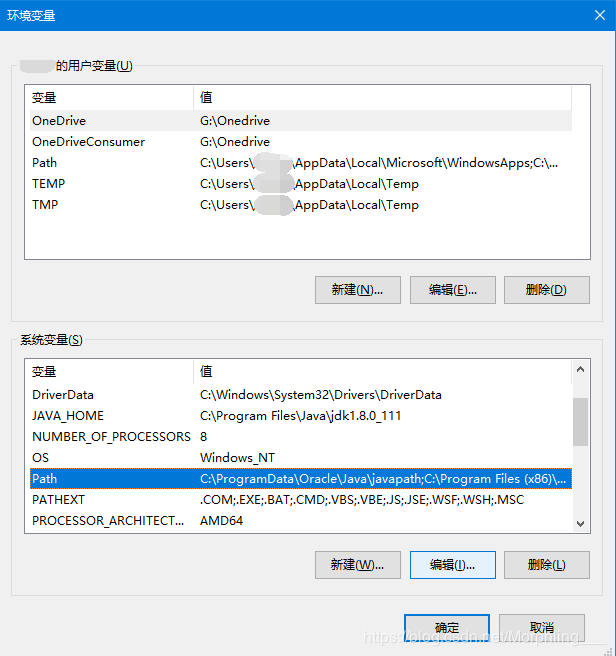2.在系统变量列表中选择path,点击编辑,然后新建,输入C:\Program Files\MySQL\MySQL Server 8.0\bin,点击确定,完成环境变量的配置