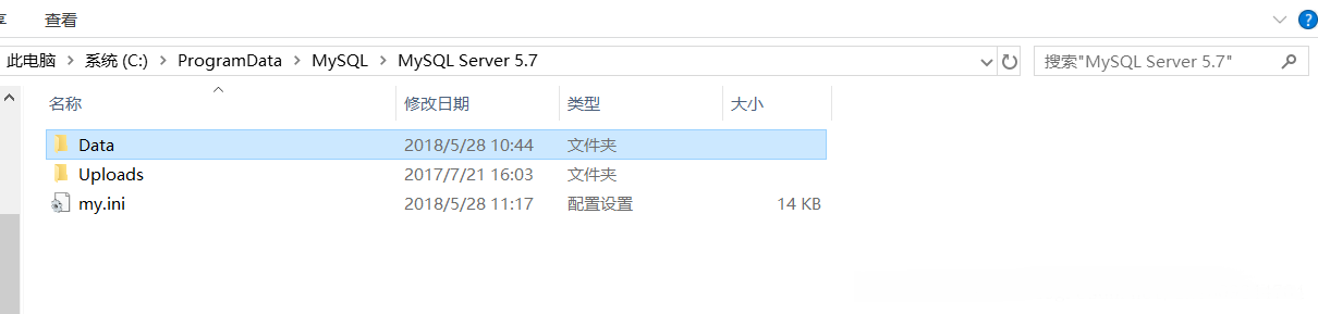 1.先找到迁移服务器上的Data文件,我安装的是mysql5.7,默认安装的路径。那么就是在C:\ProgramData\MySQL文件里面,先把隐藏文件打开。