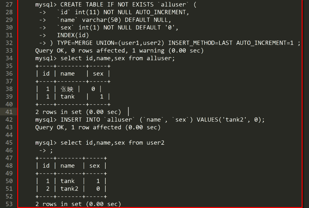 5.实现拆成二张表user1和user2,每张表25W条数据的方法代码。插入的数据方法代码