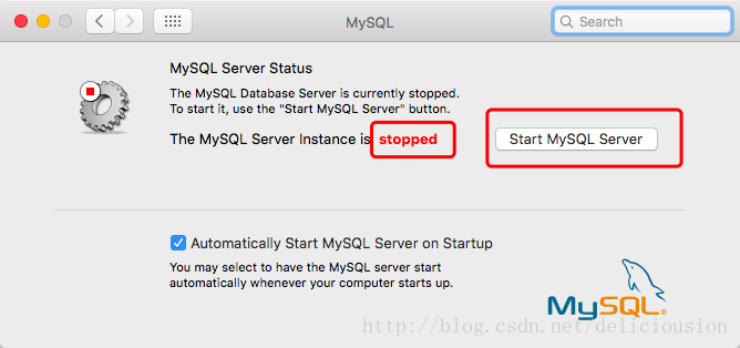 点开后服务状态为stopped停止,然后我们点Start MySQL Server按钮启动服务。