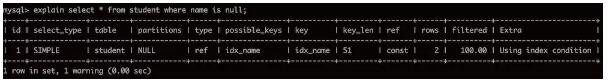 虽然MySQL可以在含有null的列上使用索引,但不代表null和其他数据在索引中是一样的。
