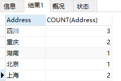 (1)对student 表按照地址分组统计 group by