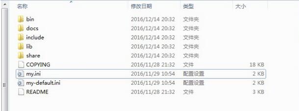 2.在解压路径下复制my-default.ini,修改名称为my.ini如下图所示