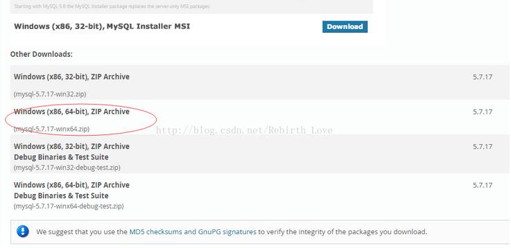 1. 进入mysql官网,登陆自己的Oracle账号(没有账号的自己注册一个),下载Mysql-5.7.17,下载地址:http://dev.mysql.com/downloads/mysql/
